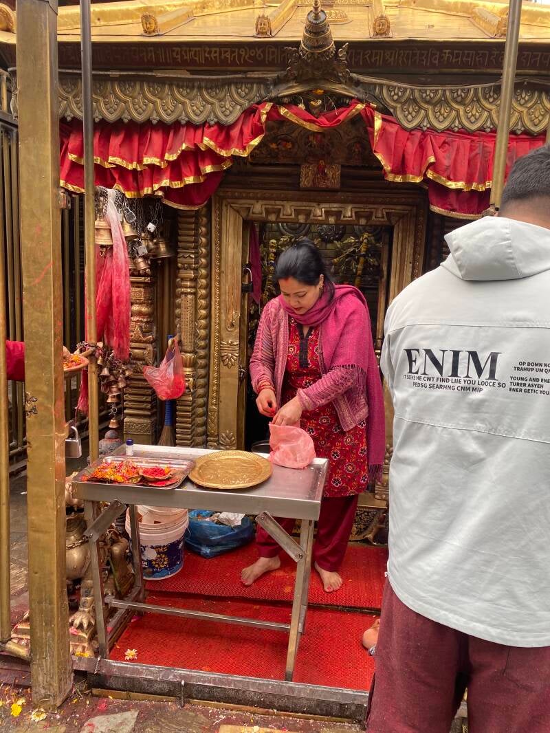Туристический центр Катманду — это большой рынок, как «толчок» в Кишинёве, кто знает. Извилистые улочки полностью заняты лавками: ларёк на ларьке. Продают всё подряд — одежду, сувениры, статуэтки, поющие чаши, благовония, чай, специи, шарфы и многое другое. Всё это ошеломляет тонкие души тех, кто приехал «просто посмотреть» или «на медитацию». Я думала: может, лучше поехать в маленький город и купить там, например, в Покхаре? Неверно. Покупки лучше делать в Катманду, но внимательно выбирать, где именно. Большинство магазинов не получают достаточного потока покупателей, вещи лежат там месяцами. Однако есть магазины более высокого качества — идите туда. Если сомневаетесь, спросите местных гидов.