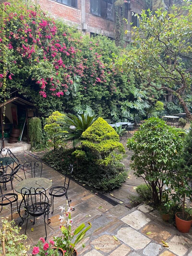 Гостиница. Уютный внутренний дворик, который создает зеленый оазис тишины и уюта в самом центре Тамеля – туристической части Катманду. Поворачиваешь в закоулок, затем еще поворот, и уже шум улицы остался где-то за стенами, а меня обнимает тишина и спокойствие. Потрясающие детали интерьера – каменные барельефы, цветущие герани, много других цветов. В этом дворе-колодце с удовольствием расцвели монстеры. Я никогда не думала, что монстеры могут виться до уровня второго этажа. Сад также служит ресторанным двориком для гостиницы. Обычно днем я сюда прибегаю в перерыве между экскурсиями, чтобы успокоиться и перевести дух.