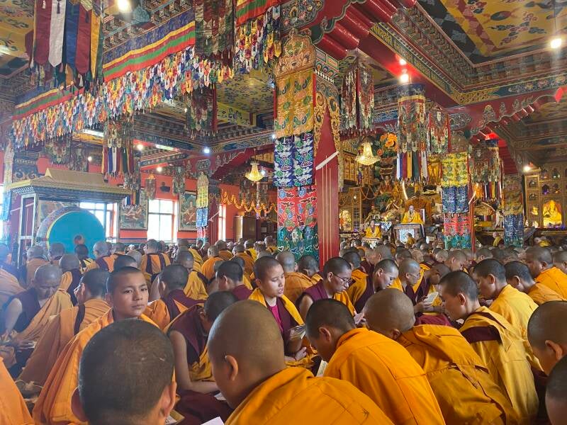 Беатрис меня направила в монастырь Копан. Еду в воскресенье. Туда обычно не пускают, но в этот день монастырь полон. Пуджа (буддистская служба с песнопениями) уже идет. Весь огромный зал заполнен рядами монахов в желто-красных одеждах. Они поют, каждый на свой лад. У них есть главный монах, который ведет службу и поет очень низким басом. В воздухе пахнет благовониями. Я чувствую себя любопытным и назойливым гостем, мне не нравится это самоощущение. Душа чувствует себя дома, но я совсем не знаю, как себя вести. Мне хочется все рассмотреть, распробовать, потому что внутри как будто появляется воспоминание: я это уже знаю! Я здесь уже бывала!