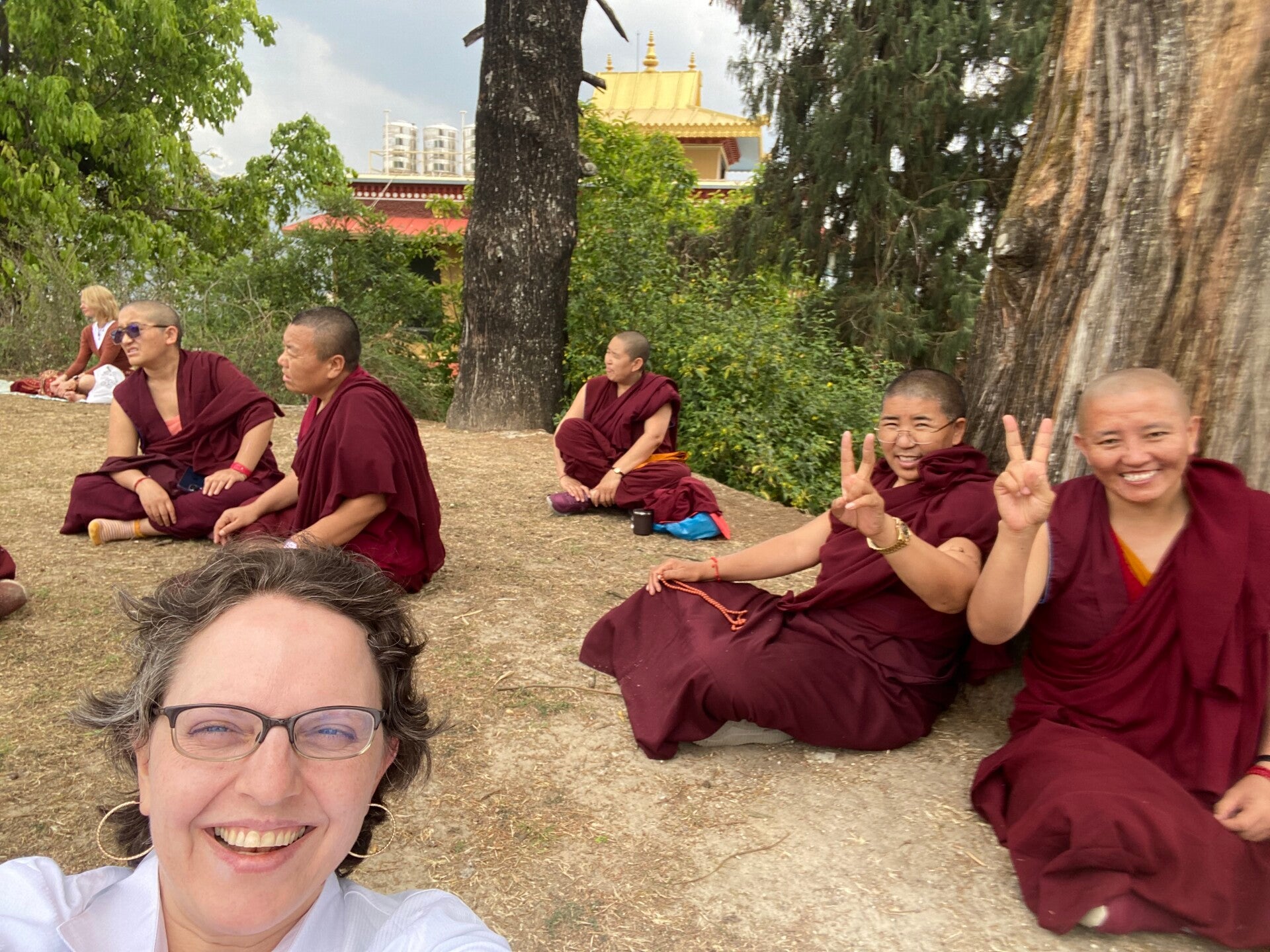 Затем перерыв. Я гуляю по монастырю и вдруг понимаю, что там есть еще холм с Буддой, на который я очень хочу подняться. Вход на холм скрыт в саду. Я его нахожу, поднимаюсь на холм, и меня очаровывает и вид, и само место. Усаживаюсь в тени огромного дерева и просто сижу. Один из редких моментов моей жизни, когда я рада просто быть. Не ищу ничего в телефоне, не читаю книгу, не ищу, с кем бы поболтать или что поделать. Я просто есть. Само место настраивает на Бытие. На созерцание Бытия. Так спокойно и прекрасно!