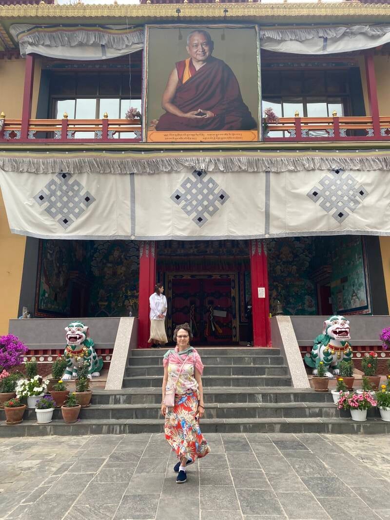 I managed to visit Kopan Monastery, on the outskirts of Kathmandu, twice—and that is rare good fortune. The first time, I went alone, to a large puja (a Buddhist prayer service) attended by senior lamas from all over the Buddhist world. I learned about this event entirely by chance. The monastery is rarely open to casual visitors, but that day it was open to everyone. The second time, I came with the group of women pilgrims with whom I had traveled to Nepal. We arrived close to closing time, and the lama welcomed us warmly, gave us a lecture on Buddhism, and then led a small puja—a prayer for peace in the world and for the well-being of all living beings.